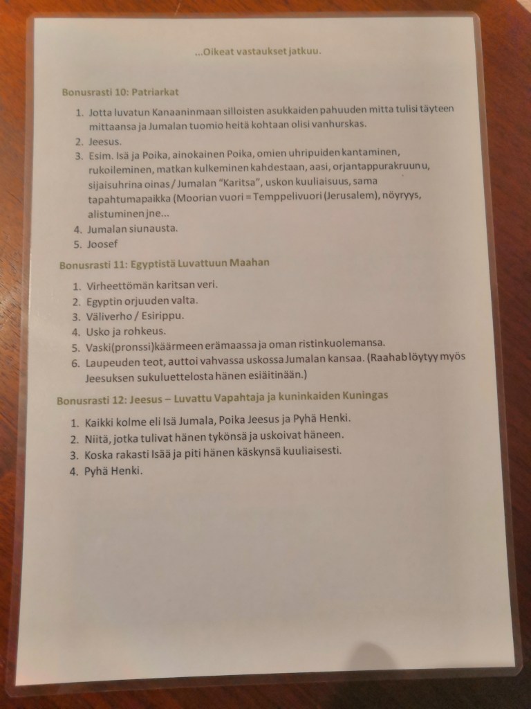 Tietovisan voi halutessaan toteuttaa koko kurssin päätteeksi vaikkapa rippikoulun loppukokeena. Varaa peliaikaa reilusti (60-90min).